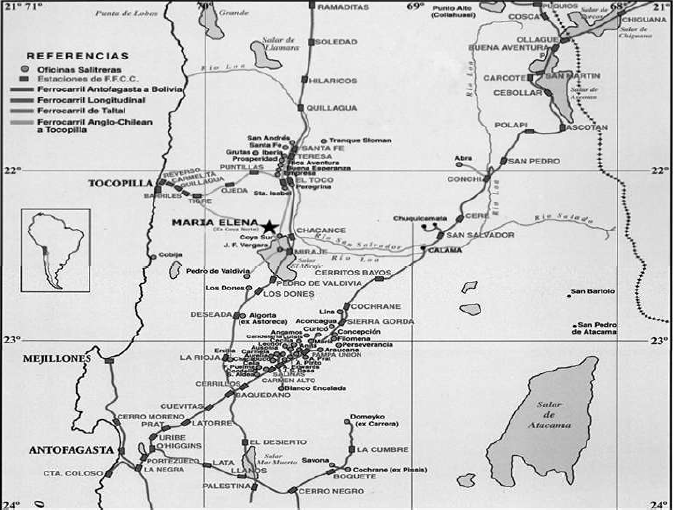 RODRÍGUEZ TORRENT, Juan Carlos y MIRANDA BROWN, Juan Pablo. (2008). “Tiempo Industrial y tiempos sociales en María Elena, la última ciudad del salitre”, Chungará, Revista de Antropología Chilena Volumen 40, Nº 1, pp. 81-97.