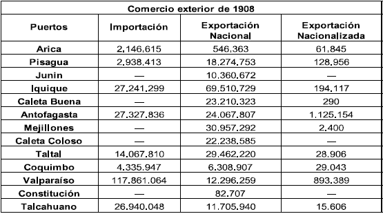 Sin embargo, las consecuencias nefastas de estos conflictos habían limitado las relaciones comerciales del puerto de Antofagasta con el comercio de Bolivia, como lo demuestra la siguiente gráfica, donde se destaca que desde el año 1906 y hasta 1909, la exportación de salitre a ese país fue nula (ver Tabla No. 1).