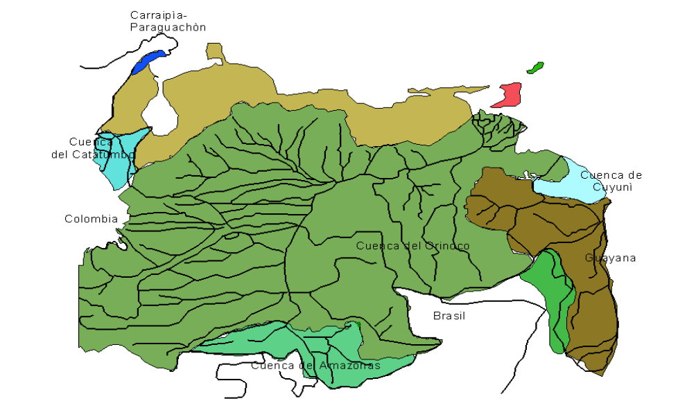 En este contexto es importante reseñar que tanto la cuenca del Orinoco como la subcuenca del Catatumbo son consideradas de tipo “exorreico”, ya que tienen salida al mar; además, comparten el rasgo de conformar unidades espaciales con interés geoestratégico para el ejercicio de la soberanía de Venezuela y Colombia, pues representan cuencas internacionales y/o aguas transfronterizas3, lo que termina por imprimir una singular posición aguas abajo al territorio nacional venezolano (Mapa 2). Dicha condición geográfica demanda la concertación y desarrollo de una agenda bilateral seria y concreta que permita consolidar la ambigüedad jurídica y sincerar el ordenamiento territorial del cual adolecen ambas cuencas, sobre todo en Venezuela.