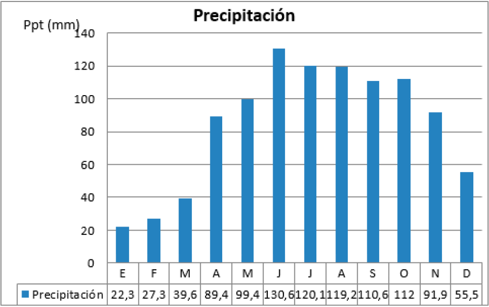 Ppt Media Anual: 1.129,1 mm. Categoría Pluviométrica: Semihúmedo 2 (sh2).
