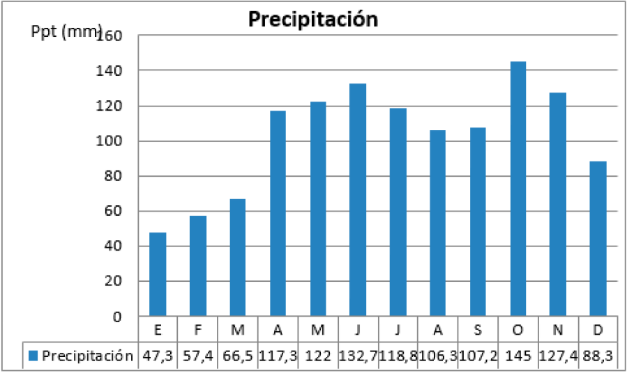 Ppt Media Anual: 1.017,9 mm. Categoría Pluviométrica: Semihúmedo 2 (sh2).