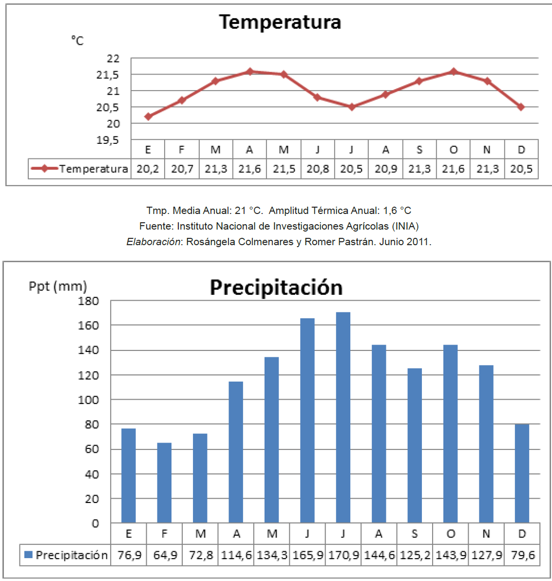 Tmp. Media Anual: 21 °C. Amplitud Térmica Anual: 1,6 °C Fuente: Instituto Nacional de Investigaciones Agrícolas (INIA)