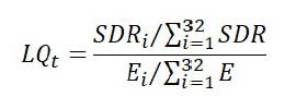 Por definición, el umbral LQ = 1 indica una situación en la que la proporción por nacimientos con SDR observada, tanto en la entidad i como en la escala nacional (ámbito de referencia), es la misma, mientras valores LQ > 1 indican una situación de concentración relativa superior en el área i relativa al contexto nacional y, por lo tanto, constituyen un área de interés a efectos de esta investigación.