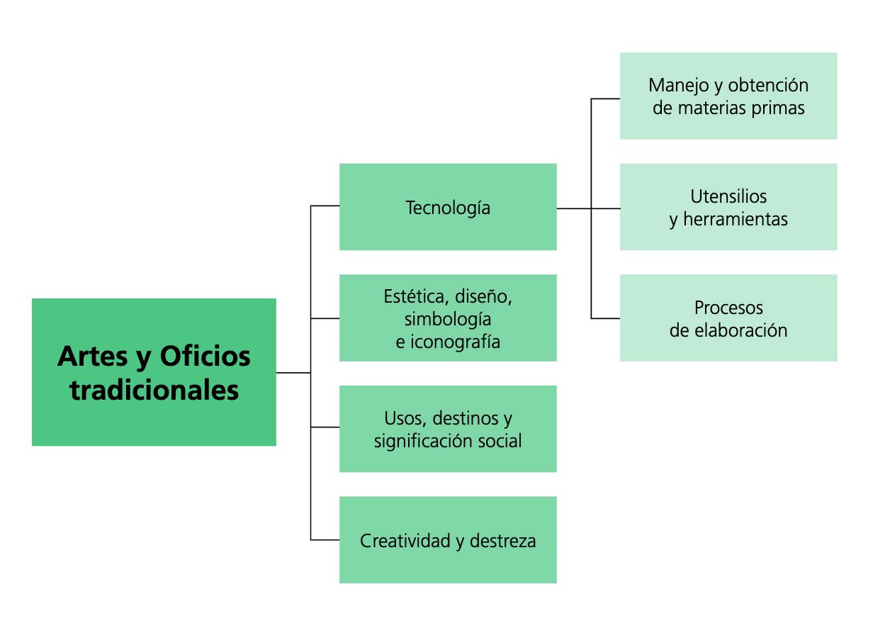 La comisión llevó a cabo modificaciones a la categorización de los cinco ámbitos quedando el de prácticas artesanales tradicionales de la siguiente manera (Ilustración 2):