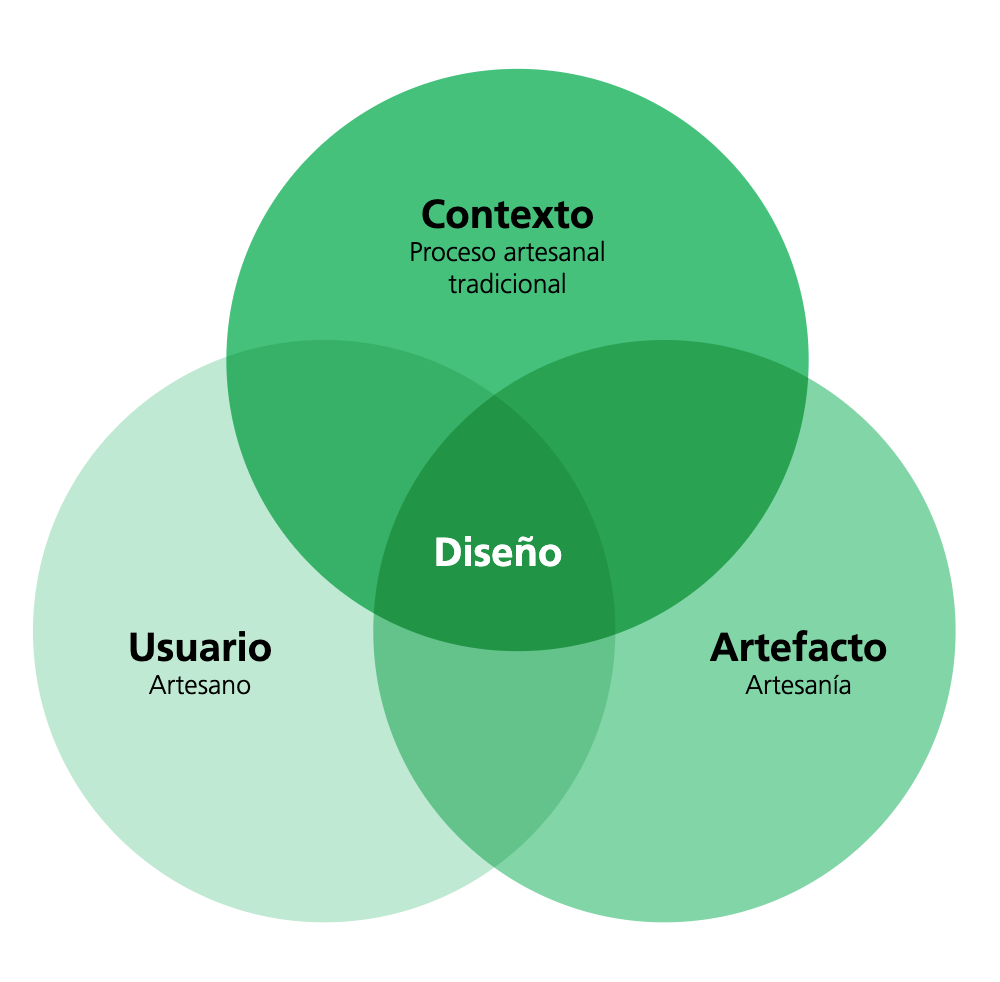 Así, los artefactos constituyen la expresión material de una cultura, y en ellos podemos ver manifestado al usuario y a su contexto, tanto en sus gustos y necesidades, como la manera de satisfacerlos y los recursos económicos y tecnológicos y productivos a su alcance, los cuales se sintetizan en dicha expresión utilitaria de la sociedad definida como cultura material. De esta manera podemos decir que la artesanía puede ser abordada desde el diseño, como la manifestación de cultura material, en un contexto productivo (artesanal), que elabora objetos, en principio, para resolver necesidades endógenas, de usuarios con costumbres, necesidades y gustos, determinados por su cultura; y posteriormente insertados en la dinámica de la modernidad y la globalización.