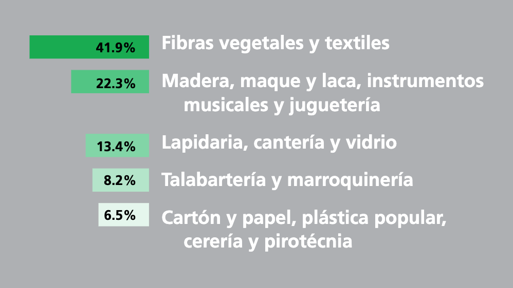 En el sector de cultura tres de cada diez puestos de trabajo ocupados corresponden a la artesanía. El proceso de comercialización es uno de los principales problemas entre otros de las artesanías mexicanas. De acuerdo con Rafaela Luft Dávalos, son pocos los artesanos que exportan sus productos y los mercados locales pagan muy poco por dichos productos (Sales Heredia, 2013, pág. 28)