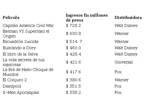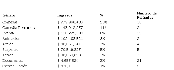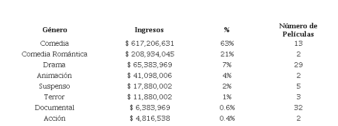 Y dentro de las 10 películas más taquilleras en México en ese año ninguna película mexicana figuró en la lista. (Tabla 4.)