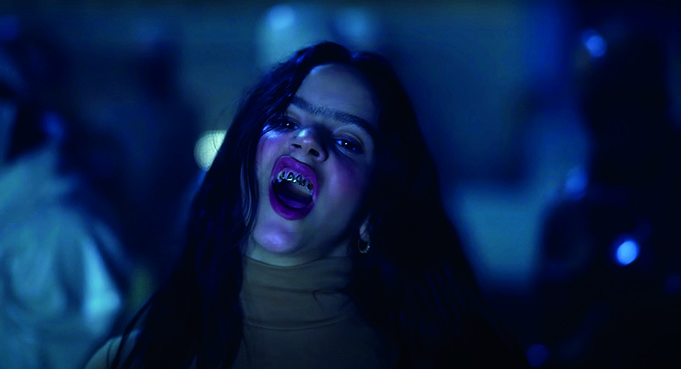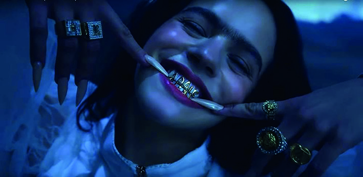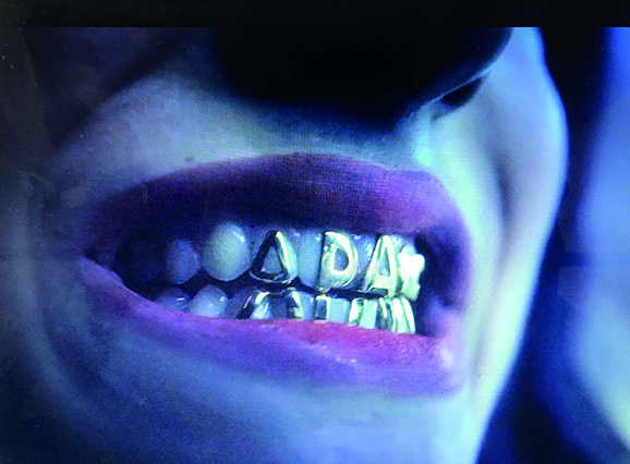 Otro elemento destacable del video son los dientes dorados que Rosalía usa en el video. Se pueden observar dos tipos: unas letras en la parte frontal de la dentadura que dicen A Palé y otras tres que aparecen en las tomas de ella dentro de un contenedor y sobre una banda industrial. Este elemento es un símbolo asociado tanto con la comunidad negra, rapera y gitana (Rodríguez, 2019). Esta última es una constante tanto en los sonidos como en las letras y el estilo visual de los proyectos de Rosalía.