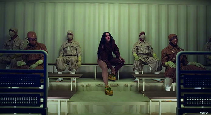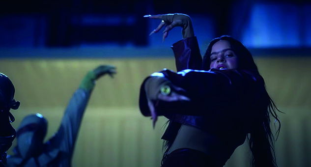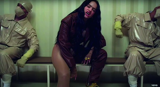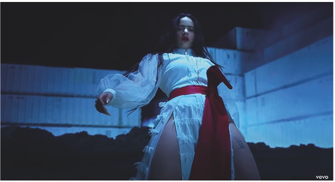 Una de las primeras cosas que llama la atención es del video es la actitud desafiante de Rosalía. Esta se puede ver con coreografías bien marcadas y agresivas, con pasos de baile marcados que parecieran golpes, así como con poses de piernas y brazos abiertos, y con la espalda arqueada.