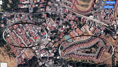 The analysis begins at the syntactic level, i.e., the relationship of the signs to each other is established. For this purpose, a description is made at two levels, architectural and urban, of the significant elements to be studied, such as the buildings’ layout, the provision of public services, and the qualities of the roads. The San Nicolás Totolapan neighborhood is in the Magdalena Contreras district of Mexico City. Figure 2 shows an aerial photograph of the municipality, which comprises neighborhoods and towns. Due to the orographic conditions of the municipality, the streets are winding. In some areas, they are narrow and lack sidewalks, allowing only one lane for vehicular traffic, and there are even closed roads and alleys. Generally, the pavement is asphalt-based, but there are areas where the streets are unpaved or in poor condition.
