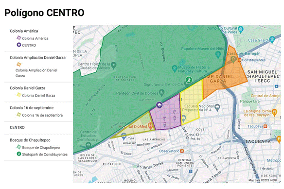 Frente al campus se encuentra la segunda sección del Bosque de Chapultepec uno de los espacios recreativos, culturales e históricos más importantes de la ciudad que incluye al skatepark Constituyentes y que es frecuentado por algunos integrantes de dicha comunidad (véase Figura 2). Si bien el bosque no está incluido en el perímetro mencionado anteriormente, es considerado como un aliado vecinal por la importancia de sus espacios públicos en la comunidad circundante.