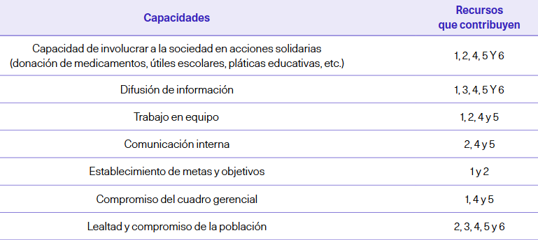 El reconocimiento social es de gran importancia dentro de las asociaciones civiles debido a que sirve como pauta para recibir participación de la ciudadanía en ámbitos sociales, económicos y ambientales. Este recurso genera una ventaja competitiva por explorar. Finalmente, el conocimiento de las necesidades del territorio es algo básico en cualquier mercado, por lo que es una igualdad competitiva, no obstante, es indispensable en las asociaciones civiles, aunque no sea raro, inimitable y sea sustituible debe de contarse con ese conocimiento para poder realizar actividades básicas.