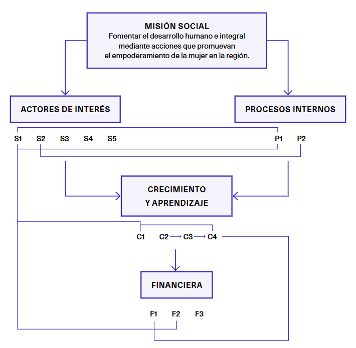 Finalmente, se elaboró la Figura 18 que contiene el Mapa estratégico, mismo que representa el sistema estratégico enmarcando las interrelaciones entre los objetivos estratégicos delimitados anteriormente. Esto permite visualizar a la planificación como un complejo sistema en donde cada actividad afecta a otra, contribuyendo a la consecución final de la organización.