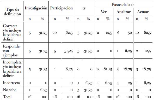 Según lo expuesto identificamos que la IP es una metodología de investigación que difiere de la convencional, al involucrar a quienes viven las problemáticas en la producción y análisis de su realidad, con el propósito de repercutir positivamente en su bienestar a través de un proceso de enseñanza-aprendizaje en la acción.