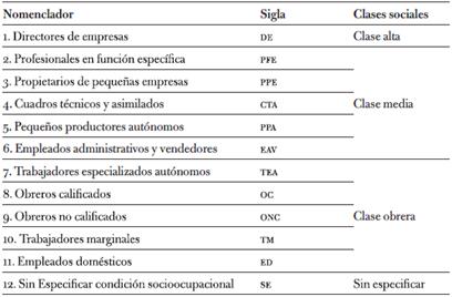En su versión agregada el nomenclador construido discrimina once estratos socio-ocupacionales y una categoría residual (tabla 2). Dicha versión es la que se utilizó para la medición de distintos aspectos que dan cuenta de las condiciones de vida de las personas. A su vez, el nomenclador presentado constituye un apropiado indicador de las características del sistema de posiciones sociales que caracteriza la división social del trabajo, es decir, de la estructura de clases.