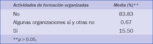 Otro tema de interés son las actividades de formación permanente propuestas o llevadas a cabo por las organizaciones para las que trabajan. En este artículo se analizaron las actividades organizadas para los trabajadores en los últimos 12 meses. Más del 80% de las personas entrevistadas afirmaron que las entidades para las que trabajaban no organizaron ninguna actividad de formación permanente para ellos. Esta podría ser una de las causas que justifique la escasa formación continua de los monitores de actividad física y deporte españoles. Al ser tan bajo el porcentaje de empresas que organizan actividades de formación en España, es muy difícil que los monitores de actividad física y deporte realicen una adecuada formación continua. Este resultado es un indicador de la necesidad de planificar una formación de mayor calidad y más adaptada para satisfacer las necesidades específicas de los monitores de actividad física y deporte (Dorgo, 2009).
