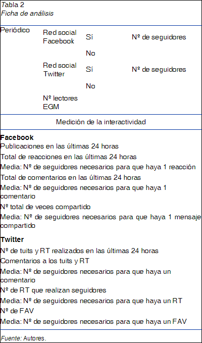 En este caso concreto, se aplicó la siguiente ficha de análisis (tabla 2).