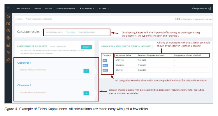 LINCE PLUS allows an integrative analysis of the data observed and its intra and interobservers data quality, enabling integrating external applications.