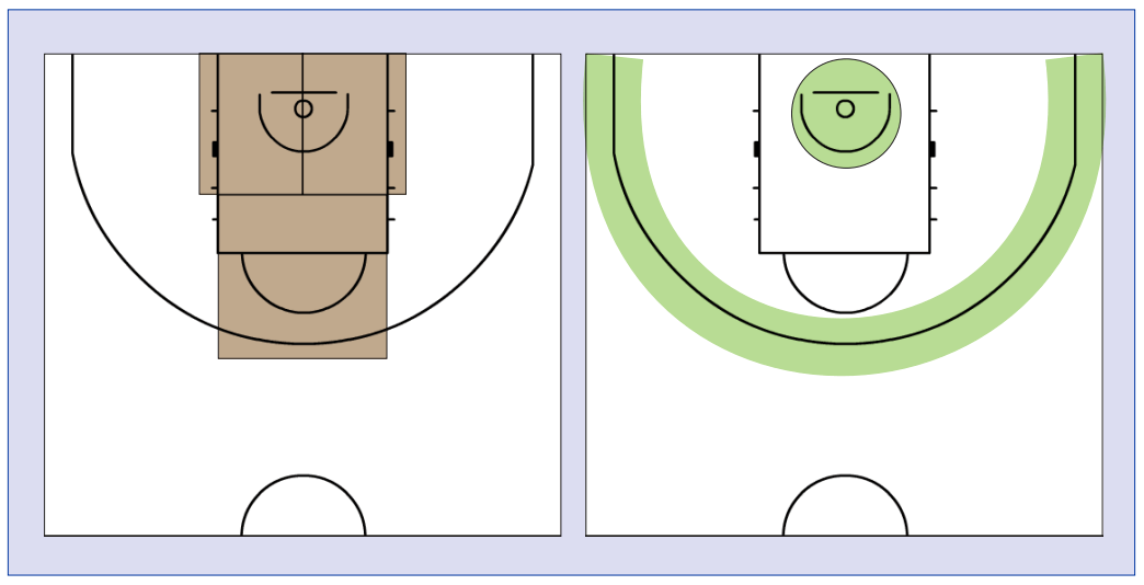 En el baloncesto moderno, la eficacia ofensiva depende en gran medida del equilibrio entre el juego exterior y el juego interior (Guppillotte, 2008). Por un lado, el dominio del ataque en posiciones interiores cercanas al aro ofrece un alto porcentaje de acierto y aumenta las opciones de obtener rebote ofensivo (Courel-Ibáñez, Suárez, Ortega, Piñar, & Cárdenas, 2013; Suárez-Cadenas & Courel-Ibáñez, 2017). Por otro lado, la ocupación de espacios exteriores facilita la circulación del balón hacia zonas alejadas del aro y favorece la aparición de lanzamientos ante una baja oposición defensiva (Lamas, Junior, Santana, Rostaiser, Negretti, & Ugrinowitsch, 2011; Remmert, 2003).