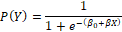 siendo: P(Y), la probabilidad de que ocurra un suceso determinado; e, la constante de Euler = 2,718281; X, la variable predictora; β0, la constante; y β el coeficiente de regresión logística.