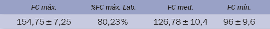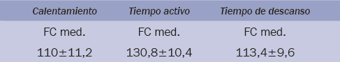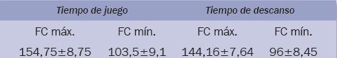 Estos valores pueden estar influidos por el momento en que se comienza a registrar la FC. Por ejemplo, si se plantea desde el principio del calentamiento, como es el caso de este estudio, los valores son menores que si se efectúan desde el comienzo del partido. Aun así, los registros son válidos para el objetivo que se establece con esta variable.