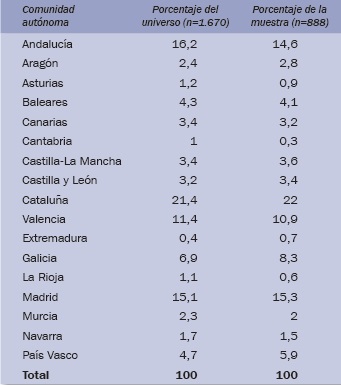 Además del análisis de nuestra población de estudio, la mayor parte de las OGIDE se concentran principalmente en Cataluña (31,2 %), Andalucía (13,9 %) y Madrid (12,3 %). Esta concentración de organizaciones deportivas es similar a la recogida en el III Censo Nacional de Instalaciones Deportivas, así como en otros estudios (Gallardo, 2005; Telecyl, 2006), o como los contemplados en el Anuario de Estadísticas Deportivas (MECD, 2015).