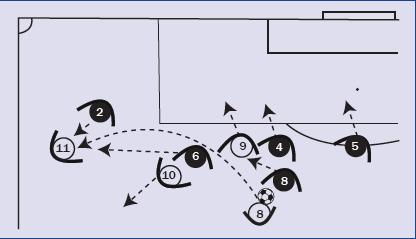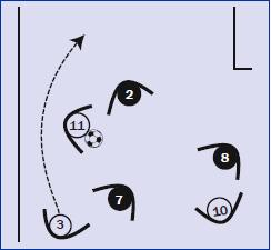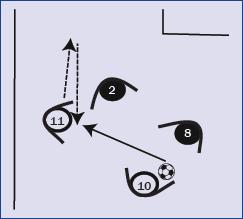El jugador número 11 debe interactuar, siguiendo todos los criterios expuestos en el presente apartado, con los jugadores que se encuentran en su radio de influencia. Debe actuar consecuentemente con cada uno de los roles que se ve influenciado, dominando espacio tiempo de la secuencia, siempre en beneficio de la siguiente acción.