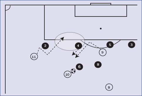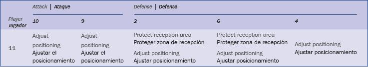 La figura 4 representa una situación en la que el jugador defensor nº 6, realiza una ayuda defensiva al jugador defensor nº 2, generando una situación de 1x2 (11 vs. 2+6). En la tabla 4 se desglosa la interacción para el AsPR (nº 11).