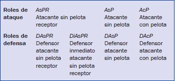 El concepto de desmarque se puede asemejar al expuesto por Castelo (1999) cuando habla de desplazamientos ofensivos. El desmarque es el concepto ofensivo que permite al atacante sin pelota liberarse del defensor inmediato, tratando de minimizar el éxito de la acción defensiva y obtener ventajas espacio-temporales, ofreciendo soluciones al poseedor. Desmarcarse implica interpretar todos los movimientos que se están produciendo en el terreno de juego, con el objetivo de estar en situación óptima de recibir la pelota y preparado para la siguiente acción. Todos y cada uno de los jugadores se desmarcan pero solo uno será el receptor final. En la tabla 1, a partir de la interesante clasificación expuesta por Martín & Lago (2005), se exponen los roles de juego. Hay que tener en cuenta que estos variarán durante el desarrollo de las secuencias y que son una referencia inicial.