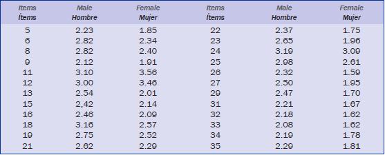 En la tabla 3se detallan las medias en función de la variable sexo de los participantes, y como se puede observar, los chicos presentan puntuaciones superiores a las chicas en todos los ítems excepto en el ítem 11, las chicas pueden desarrollar sus capacidades físicas tanto como los chicos, donde se cambia la tendencia.