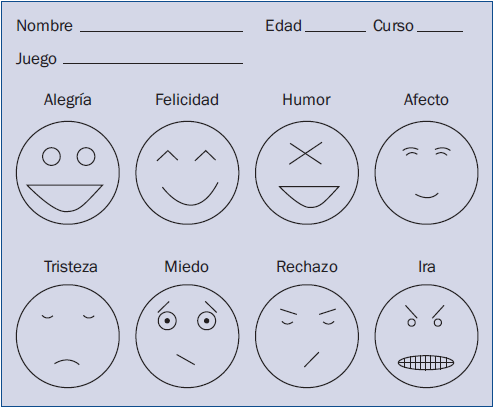 Al finalizar el juego los alumnos identificaron su vivencia emocional experimentada mediante un instrumento ad hoc (fig. 1) a través de ocho símbolos gráficos (DeKlerk, Dada, & Alant, 2014), que representaban expresiones faciales de cuatro emociones positivas (felicidad, alegría, humor y afecto) y cuatro emociones negativas (tristeza, ira, miedo y vergüenza) (Lazarus, 1991). Las emociones fueron seleccionadas considerando su vinculación con fines educativos (Bisquerra, 2010). Asimismo, se recogieron comentarios subjetivos donde destacaban los aspectos más significativos para justificar esa emoción más intensa.