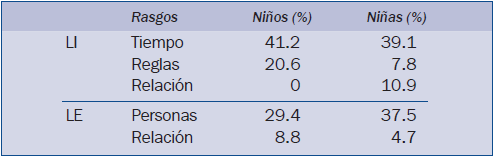 En la tabla 3se muestran los resultados obtenidos según el género y los rasgos de la LI y LE mencionados.