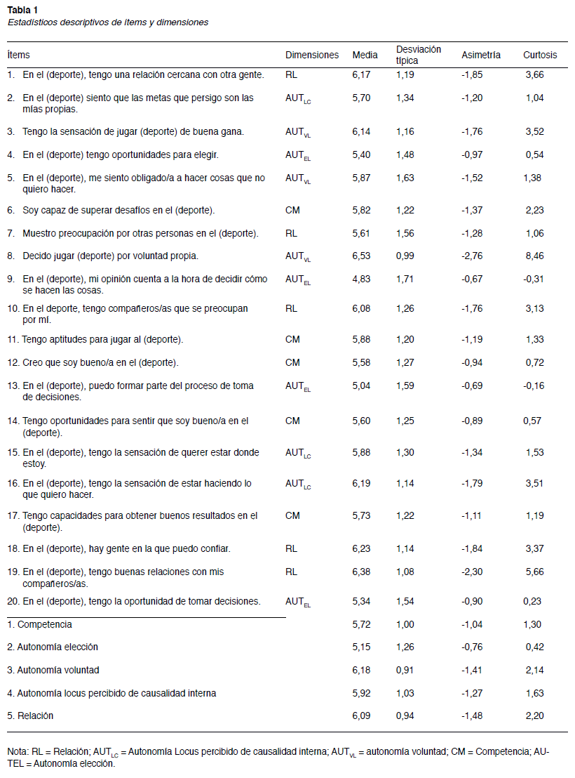 En cuanto a las puntuaciones medias encontradas, cabe destacar que al igual que sucede con la versión para deportes colectivos (De Francisco et al., 2018) la puntuación más baja se dio en el ítem 9 (autonomía elección) y la puntación más alta en el 8 (autonomía voluntad). Este resultado posiblemente tenga explicación en la cultura, ya que dentro de un mismo contexto algunos ítems parecen tener más importancia que otros en función del origen de la muestra (Chen et al., 2015).