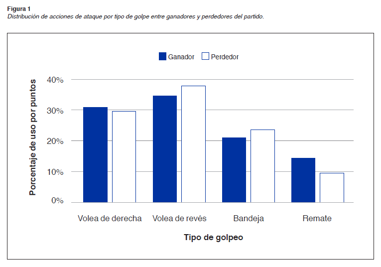 Las acciones de ataque registradas fueron clasificadas en cuatro golpes diferentes (Courel-Ibáñez et al., 2017), distinguiendo entre los realizados por los ganadores y por los perdedores del partido: