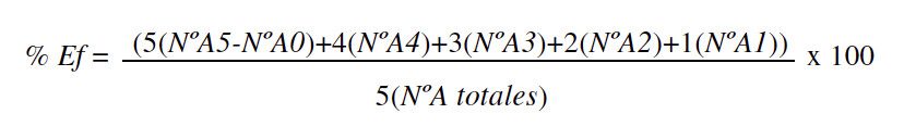 Donde: Ef es Efectividad, Nº A5 el número de remates con valoración 5, Nº A4 es el número de Remates 4, y así sucesivamente.