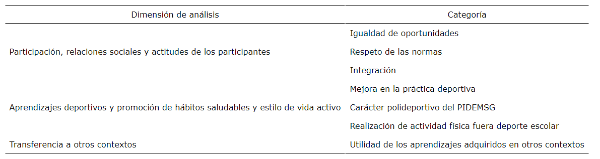 El instrumento utilizado para la recogida de información fue la entrevista. Según Kvale (2011), permite explorar las interpretaciones de las personas y la forma de entender su mundo, proporcionando un acceso único al punto de vista de los sujetos sobre sus situaciones y experiencias. En esta investigación se realizaron entrevistas en profundidad semiestructuradas en las que se siguió el guion elaborado y validado por Lobo (2017) para estudiar el valor educativo del PIDEMSG. La composición de las dimensiones y preguntas fue realizada a priori por los investigadores a partir de la documentación del Programa y la literatura científica. Tras ello fueron validadas a través de consultas a expertos de deporte escolar para filtrar y desestimar las preguntas de acuerdo con la finalidad del estudio. El guion final estaba compuesto por preguntas adaptadas a cada colectivo sobre ocho dimensiones (respeto por las normas, participación e igualdad de oportunidades, hábitos saludables, carácter polideportivo, integración, autopercepción motriz, relación con los estudios y transferencia para la vida) que hacían referencia a las intenciones del Programa y están en consonancia con los fines de la EF.
