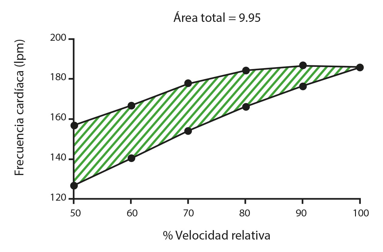 La histéresis de una variable específica puede cuantificarse a través del área de histéresis, que refleja la cantidad de energía disipada tras la recuperación de la variable (Mayergoyz, 2003). La Figura 1 representa el área de histéresis correspondiente al espacio entre las fases creciente y decreciente de un protocolo de esfuerzo piramidal. Montull et al. (2020) demostraron que un área de histéresis más baja de la tasa de esfuerzo percibido (TEP) y la frecuencia cardiaca (FC) se asocia con una mayor pericia del deportista y una mayor eficacia de recuperación. En consecuencia, los autores sugirieron que el área de histéresis de las variables psicobiológicas también puede ser sensible a la acumulación de esfuerzo, que apenas se capta a través de las técnicas de análisis de datos y los protocolos de evaluación que se aplican habitualmente hoy en día (Halson, 2014).