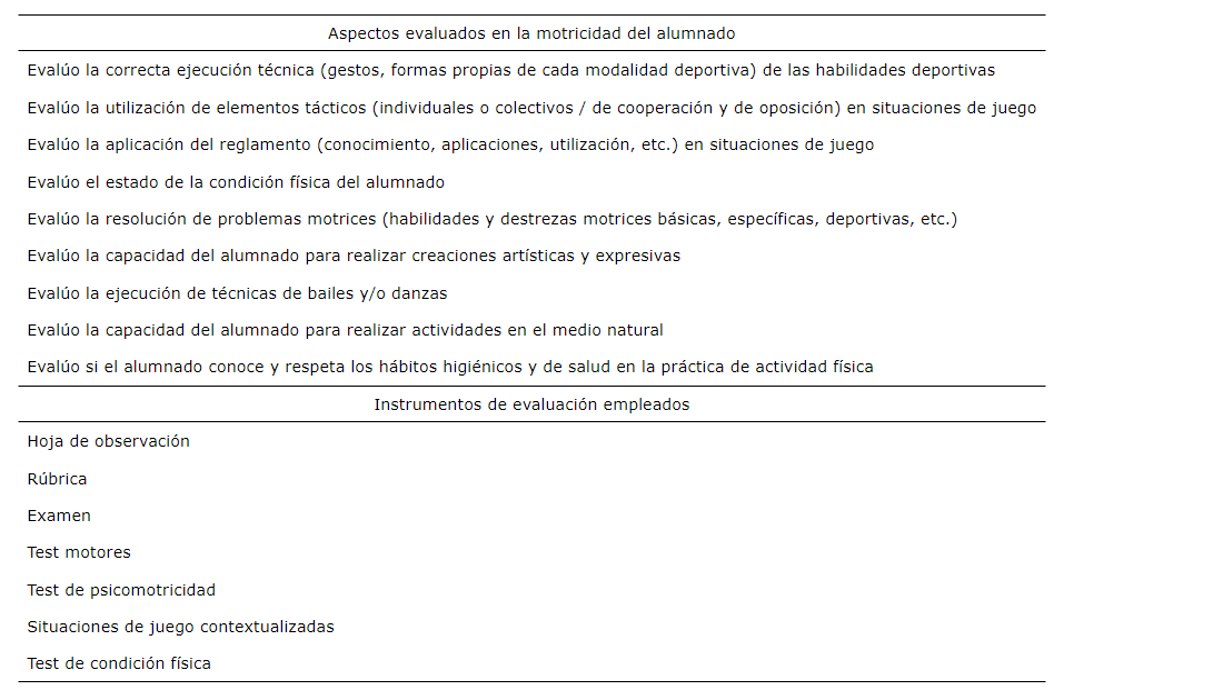 Aspectos que evaluar en la motricidad del alumnado e instrumentos de evaluación en Educación Física