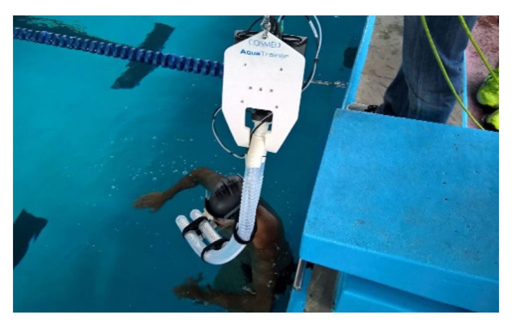 Antes de la prueba, y con el objetivo que los participantes conocieran el equipo, utilizaron durante entre seis y diez sesiones ordinarias de entrenamiento un tubo de respiración normal junto con una pinza nasal. A lo largo de estas sesiones, los participantes realizaron vueltas abiertas. El protocolo de la prueba consistió en 200 m de estilo crol (T200). Se indicó a los participantes que no realizaran ninguna actividad física y que se abstuvieran de tomar cafeína y alcohol 24 h antes de la prueba. Antes de la T200, los deportistas realizaron un calentamiento estandarizado de 600 m con estilo crol: 200 m a intensidad leve a moderada, 200 m con tubo de respiración normal y pinza nasal, y 200 m con tubo de respiración (Aquatrainer, Cosmed, Italia) conectado a un analizador de gases (K5, Cosmed, Italia) y una pinza nasal.