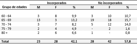 Resultados: predominaron los hombres, de 65 a 69 años, casados, encontrándose, además, la baja incorporación a los círculos de abuelos en esta área de salud.