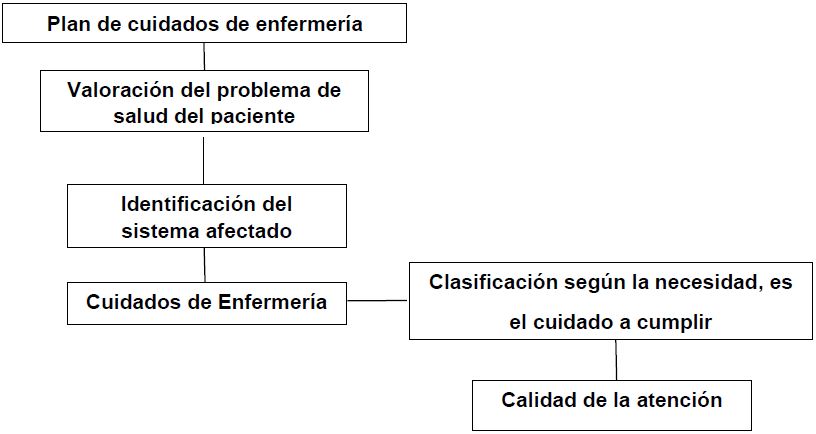 El personal de enfermería tiene como premisa fundamental el cuidado de los pacientes (Figura 1). Para esto debe tener presente un orden metodológico, aspectos que se consideran necesarios para cumplir con calidad los cuidados que se proponen realizar en cada paciente, tanto en centros externos, en la comunidad (casas de abuelos), como en los centros internos de salud (hogares de ancianos).