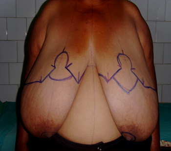 Con el uso de la técnica, resecamos volúmenes de 4 000 g en cada mama, la cual tenían una hipertrofia mamaria del tipo de: gigantomastia.