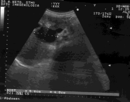 Se observa dilatación del colédoco, imagen hipoecoica, que mide 56x40 mm.