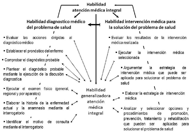 Estas acciones se organizan en un sistema y adquirieren un carácter integrador que se concreta en la secuencia lógica de acciones y operaciones que posibilitan y conforman la habilidad generalizadora AMI, la cual expresa la lógica profesional del médico general para llevar a cabo la función asistencial.