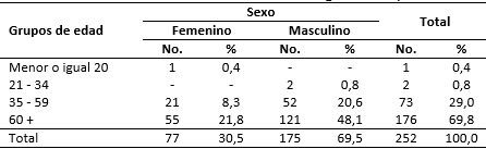 Se precisó en la Tabla 2 que los pacientes más afectados fueron los hombres (69,4 %) y aquellos con edad igual o mayor a 60 años (69,8 %).