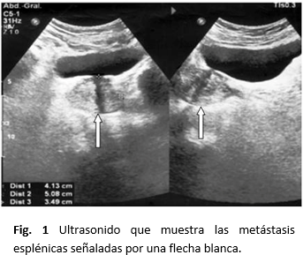 Las metástasis esplénicas cuyo origen es el páncreas son excepcionales. Grauer, en 1939, citado por Abrams6, en 34 casos de cáncer de páncreas halló cuatro metástasis en el bazo 11,7 %, Nash7, en 1966, en 37 pacientes con adenocarcinoma de páncreas halló dos metástasis en el bazo 5,4 %. Lam y Tang3, en el 2000, en un periodo de estudio de 25 años y 92 pacientes con metástasis en el bazo, de estos 11 tuvieron cáncer de páncreas.