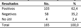 En la Tabla 1 se observa que del total de casos con sospecha de cáncer de pulmón, se llegó al diagnóstico de malignidad en 103 pacientes para un 62,4 %, seguido por los negativos de malignidad con 58 casos para un 35,2 %.