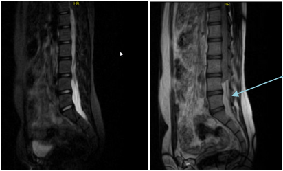 Se presentó una paciente femenina de 20 años de edad, de procedencia urbana, con antecedentes de histerectomía hace alrededor de un año. Acudió al servicio de Neurocirugía porque hace más menos un año presentó un dolor en la región lumbar que comenzó de forma leve y que luego fue aumentando hasta hacerse insoportable, el mismo se irradiaba a la porción anterolateral del muslo derecho hasta el dorso del pie. Sólo se aliviaba con la administración de diclofenaco sódico.