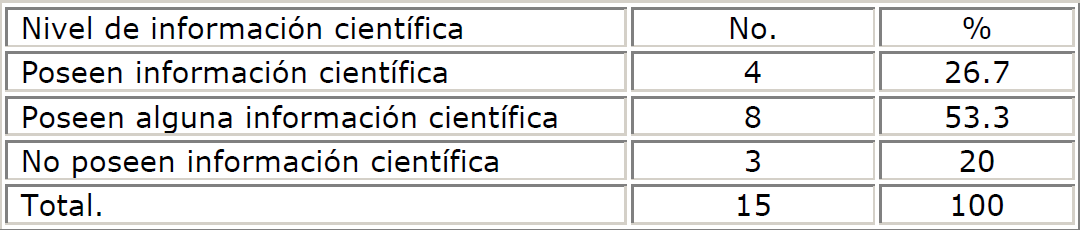 En la Tabla 3 se observa según los resultados de la encuesta que el 53.3 % de los abuelos poseen alguna información sobre calidad de vida y un 20 % no posee ninguna información.