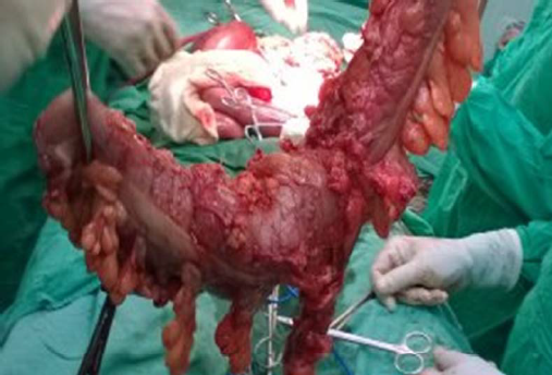 Se realizó hemicolectomía izquierda con colostomía tipo Hartman.